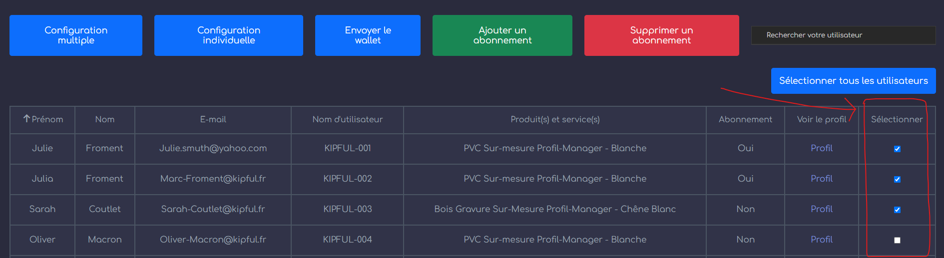Étape 3 : Sélectionner un ou plusieurs Utilisateurs