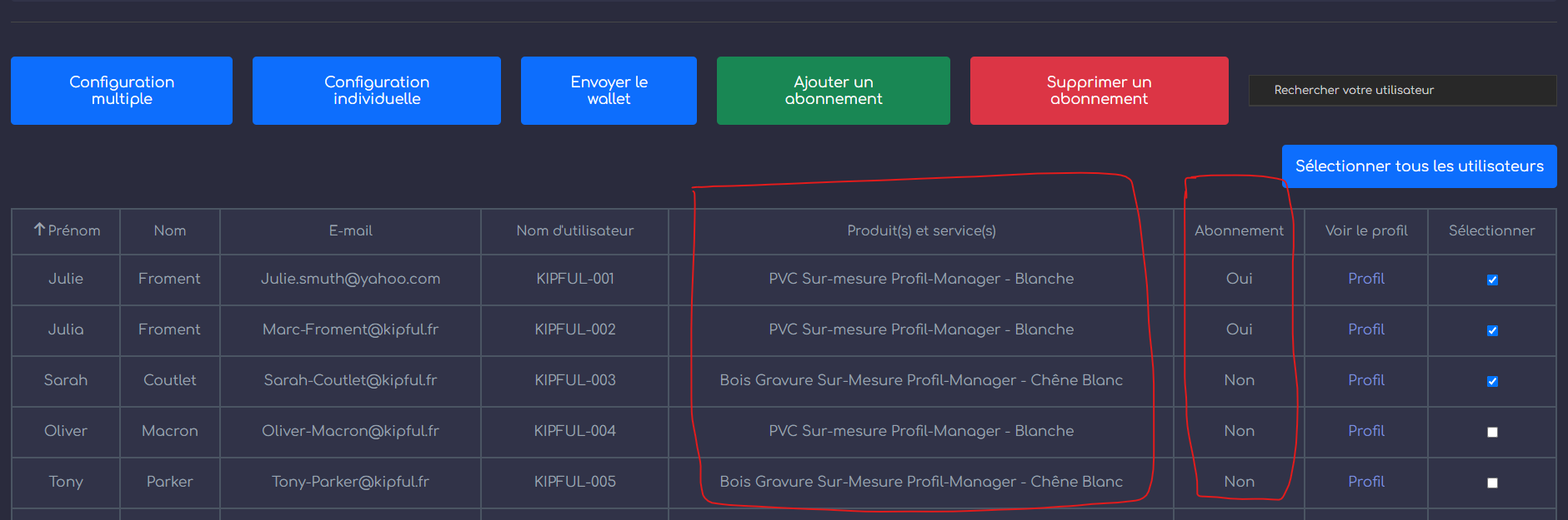 Comment attribuer des Abonnements aux Utilisateurs dans le Profil Manager de Kipful ?