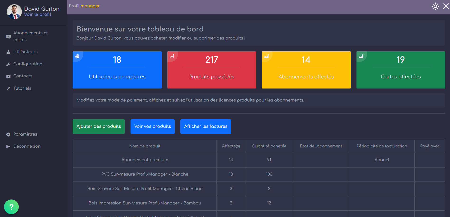 Bienvenue dans le guide de navigation du tableau de bord du Profil Manager de Kipful. Ce guide est conçu pour vous aider à comprendre et à naviguer efficacement dans l'interface du Profil Manager afin de gérer les utilisateurs et les produits de votre entreprise avec aisance.